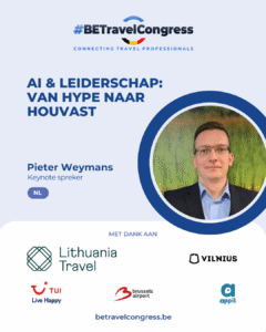 Pieter Weymans heeft meer dan 20 jaar ervaring in de reissector. Hij heeft zowel ervaring op de Belgische als Nederlandse markt vanuit verschillende management-posities. Hij is ook gastspreker op tal van events en staat bedrijven bij in het uitwerken en ontplooien van hun strategie. Hij is binnen en buiten de sector gekend vanwege zijn uitgebreide kennis van de “AI” en sprak reeds op heel wat workshops en congressen over het concreet toepassen van AI binnen de reissector. Vandaag gaat hij een stapje verder met zijn Keynote “The Seven Habits of Modern AI Leaders” waarbij de structuur geïnspireerd is door “The 7 Habits of Highly Effective People” van Stephen Covey. Hij toont met zijn keynote hoe AI functioneert als tweede brein, spiegel en versneller van leiderschap. De nadruk ligt volledig op jou als leider hoe je kijkt, beslist focust, communiceert en groeit. Hij geeft in zijn eigen stijl concrete en direct inzetbare voorbeelden van AI-tools, agents, workflows als illustratie van leiderschapsgedrag. Hij geeft zo inzichten in: